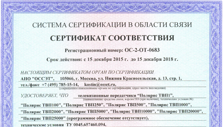Обновлены сертификаты на Полярис ТВП